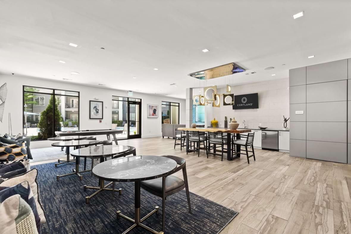 Browse our photo gallery to view our luxury apartments in Chamblee. Community amenities like our flexible work spaces with Wi-Fi, fitness center with Peloton® bikes, dry cleaning and laundry service, and so much more, make your everyday life a breeze. Then, step into your one or two-bedroom apartment home and relax with features like fiber internet, smart thermostats, built-in bookshelves, and more.