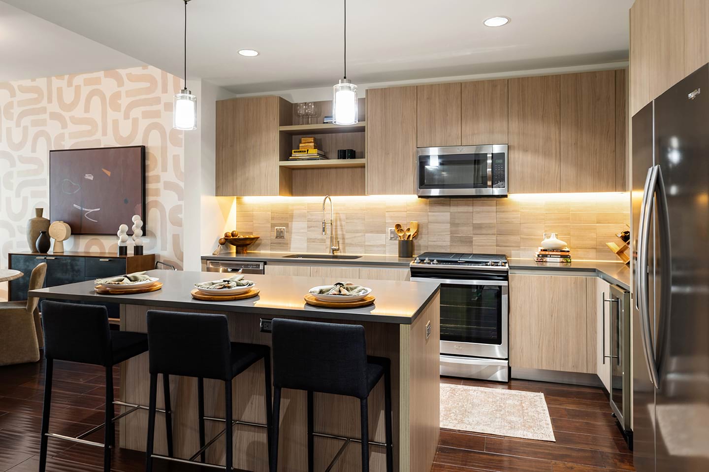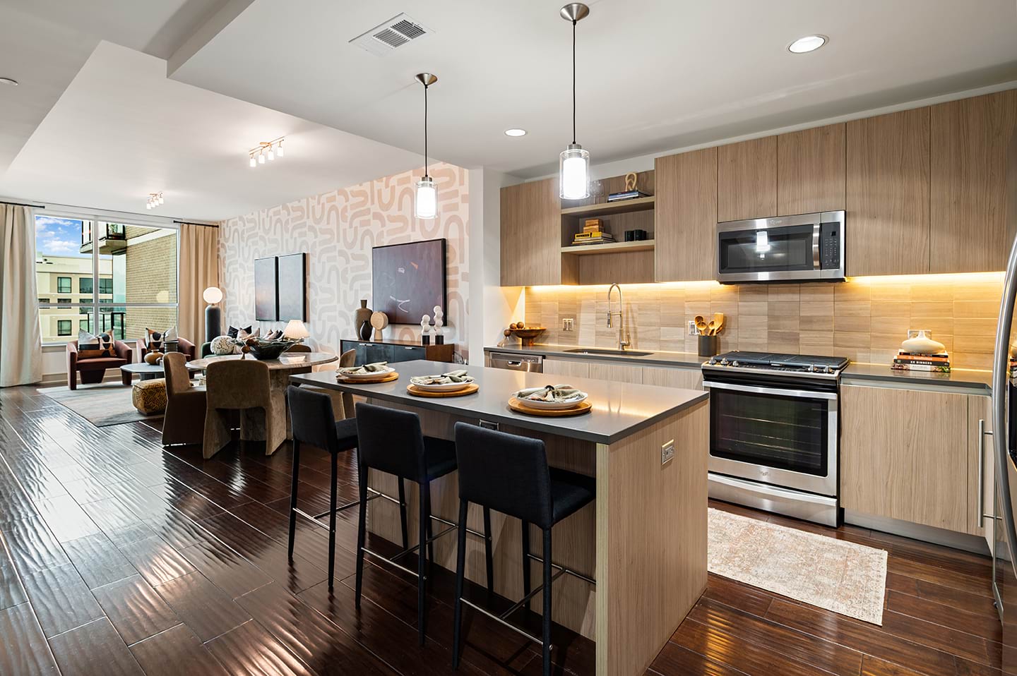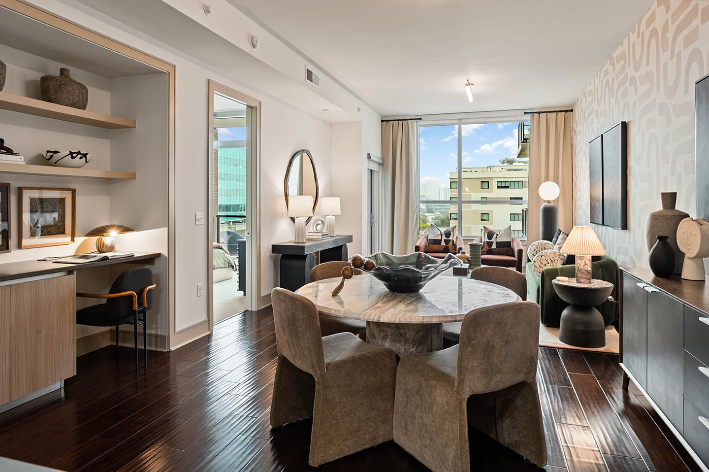 Browse our photo gallery to view our apartments in Houston, TX near Texas Medical Center. Community amenities like a rooftop pool, a sports lounge, dry cleaning services, a resident concierge, and so much more, make your everyday life a breeze. Then, step into your apartment home and relax with features like built-in wine fridges, skyline views, gas ranges, and more.