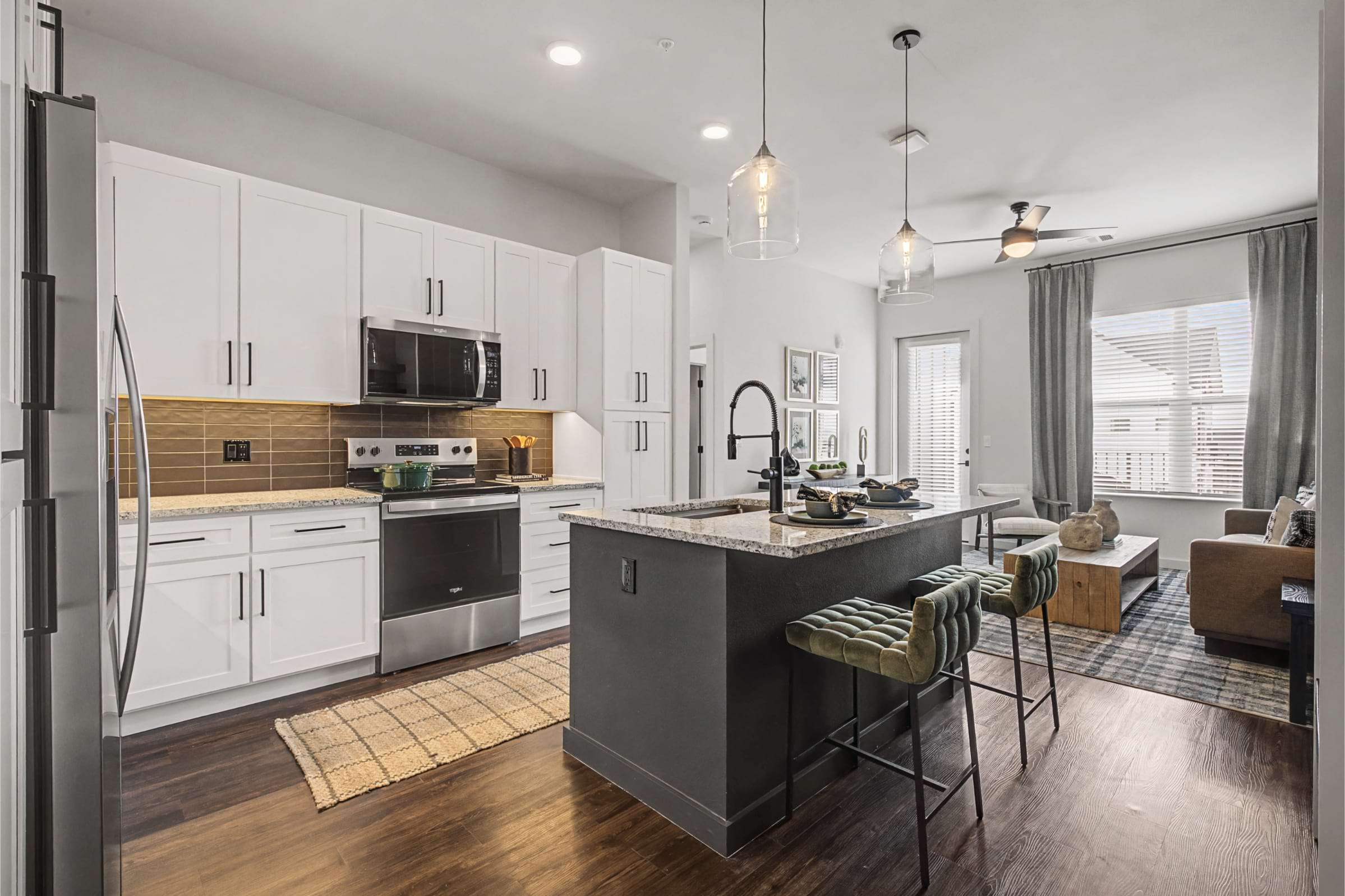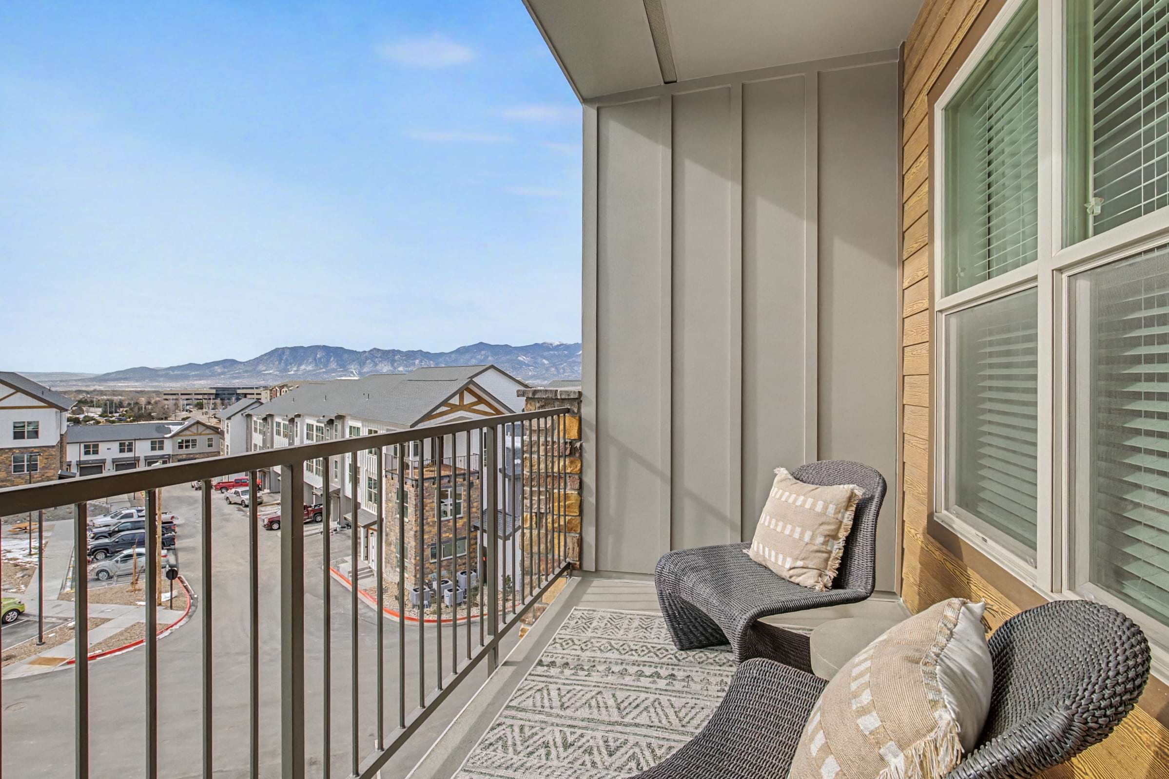 Browse our photo gallery to view our apartments for rent in Colorado Springs near UCCS. Enjoy community amenities like scenic mountain views, a heated, resort-style pool and spa, 24/7 fitness center with Peloton® Bikes, private resident bar, and so much more. Then, step into your 1, 2, or 3-bedroom apartment home and relax with features like sleek granite countertops, energy-efficient, stainless steel appliances, and full-size washer and dryers.