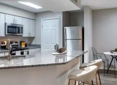 Browse our photo gallery to view our Van Dorn apartments in Alexandria. Community amenities like our resort-style pool and sun deck, 24/7 fitness center and yoga studio, resident clubhouse, and so much more, make your everyday life a breeze. Then, step into your 1-, or 2-bedroom apartment home and relax with features like keyless home entry systems, energy-efficient, stainless steel appliances, and in-home washer and dryer sets, and more.