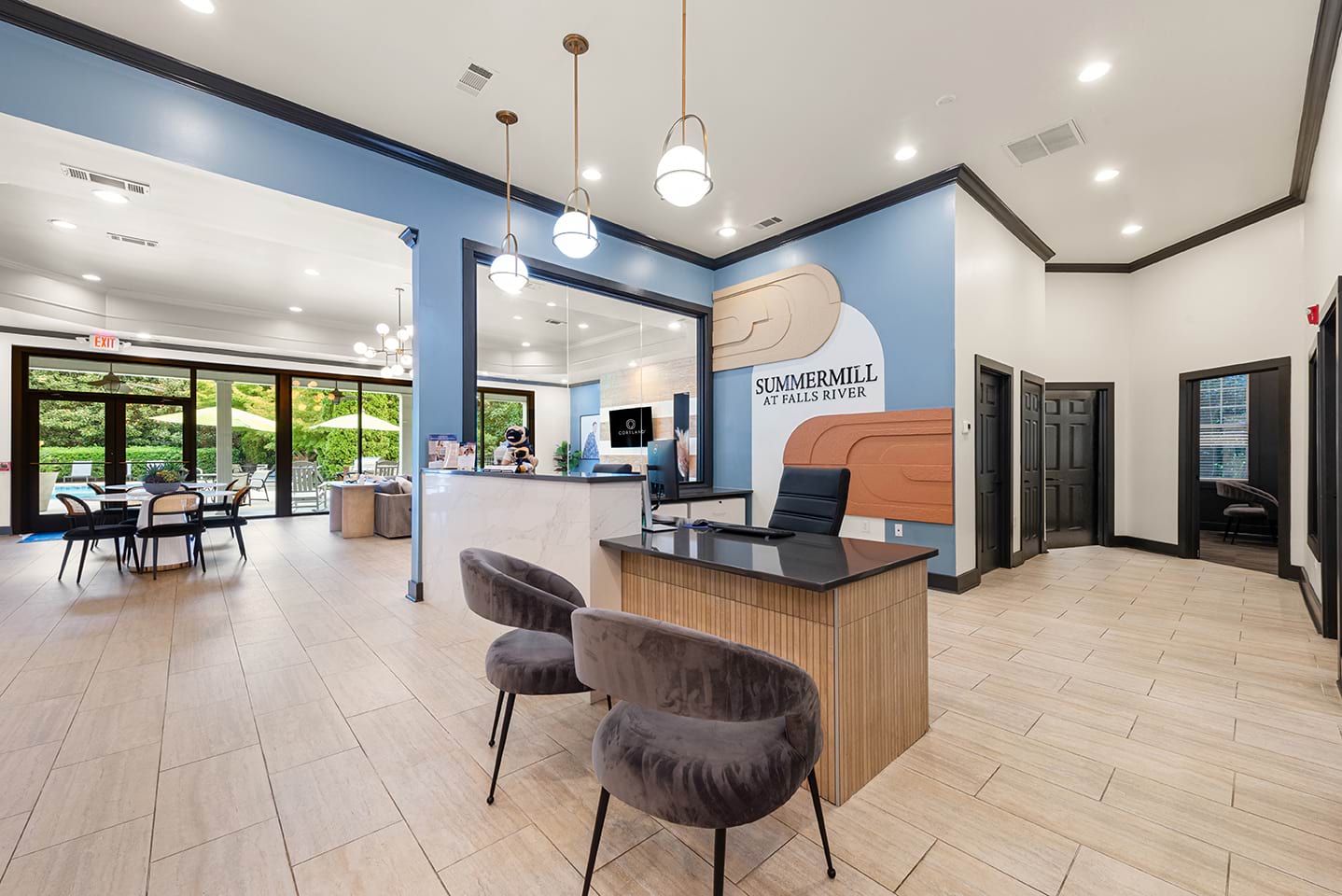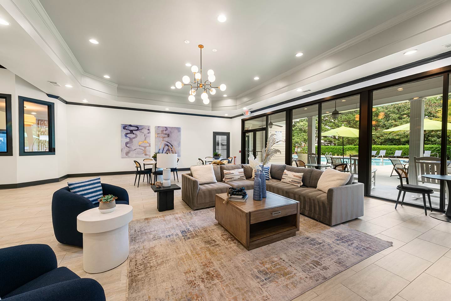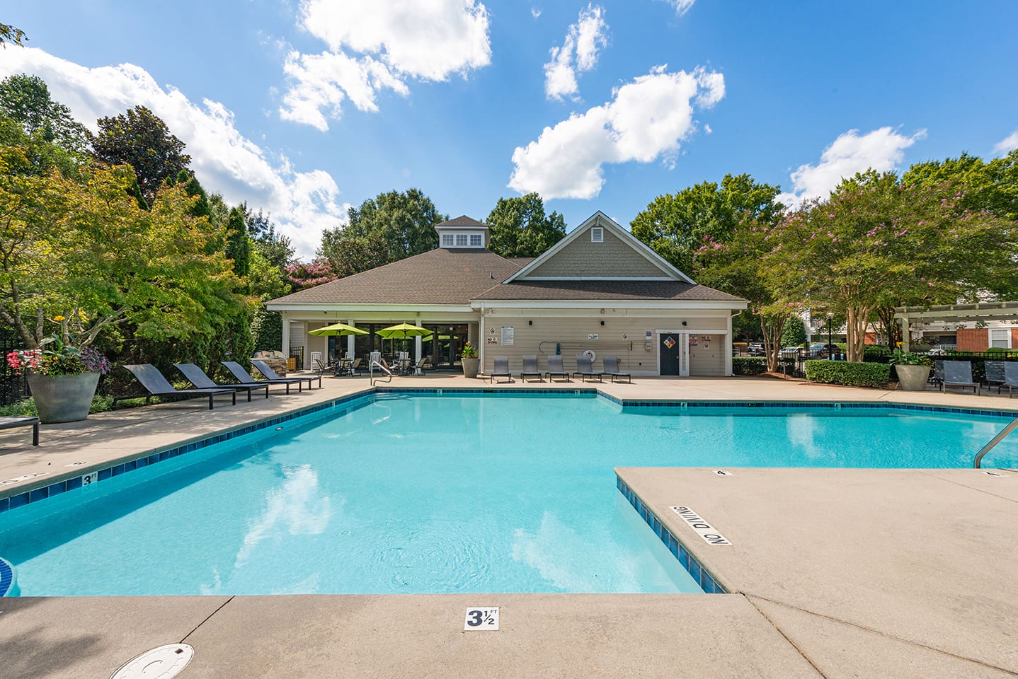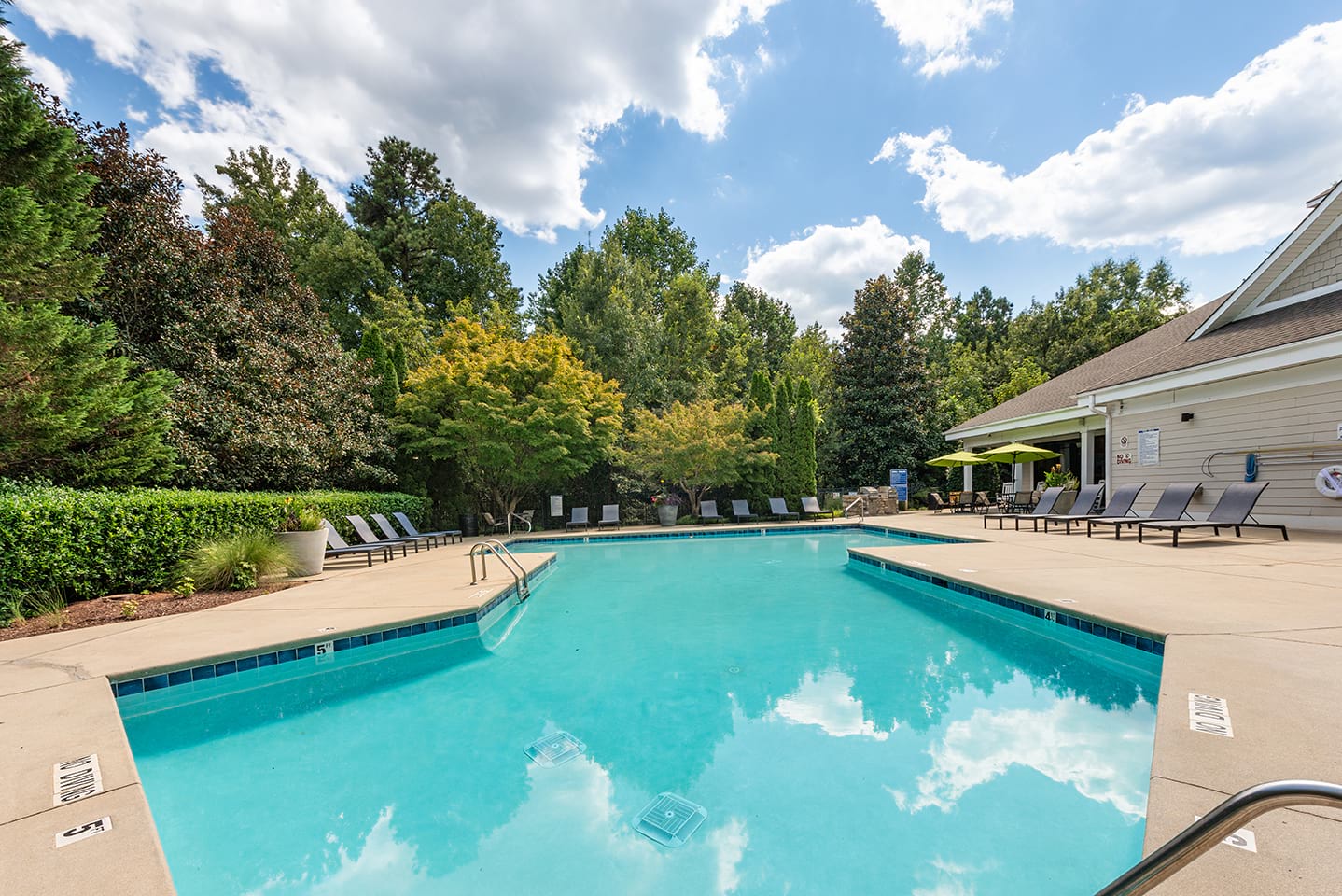 Browse our photo gallery to view our pet-friendly apartments near Falls of Neuse Road in Raleigh, NC. Community amenities like a resort-style pool, a 24/7 fitness center, elevators, and so much more make your everyday life a breeze. Then, step into your apartment home and relax with features like built-in desks, in-home washer and dryer sets, deep-soaking bathtubs, and more.